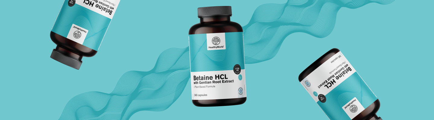 A Betaína HCL ou betaína hidroclorídrica é um composto natural que no nosso corpo pode atuar como uma fonte adicional de ácido clorídrico, o que afeta a acidez no estômago. Uma maior acidez no estômago é importante para: