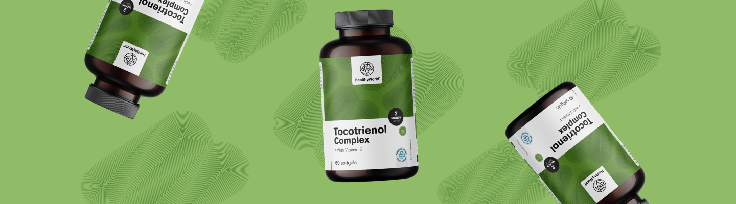 Além disso, este complexo contém também tocotrienóis, substâncias bioativas especiais que pertencem à família da vitamina E. Devido à sua estrutura molecular única, os tocotrienóis são bem absorvidos pelo organismo, onde oferecem um suporte abrangente e, assim, mantêm o equilíbrio do corpo.